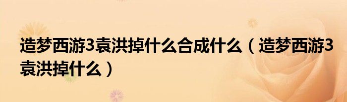 关于造梦西游3袁洪掉什么合成什么,造梦西游3袁洪掉什么这个很多人还不知道,今天菲菲来为大家解答以上的问题,现在让我们一起来看看吧!