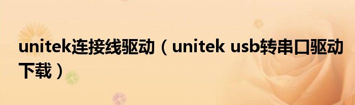 关于unitek连接线驱动,unitek usb转串口驱动下载这个很多人还不知道,今天菲菲来为大家解答以上的问题,现在让我们一起来看看吧!