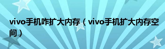 vivo手机咋扩大内存,vivo手机扩大内存空间很多人还不知道,乐乐来为大家解答以上问题,现在让我们一起来看看吧!
