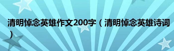 清明悼念英雄作文200字,清明悼念英雄诗词这个很多人还不知道,小飞来为大家解答以上的问题。现在让我们一起来看看吧!