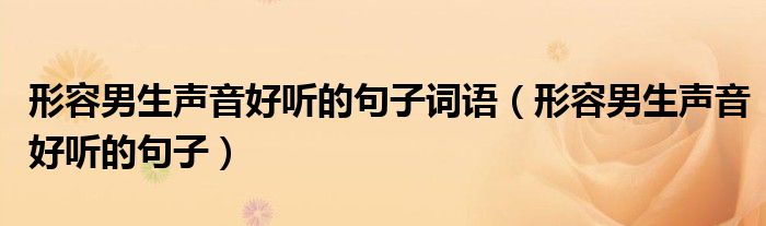 关于形容男生声音好听的句子词语,形容男生声音好听的句子这个很多人还不知道,今天菲菲来为大家解答以上的问题,现在让我们一起来看看吧!