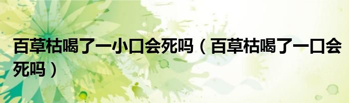 大家好,小晋来为大家解答以下问题,关于百草枯喝了一小口会死吗,百草枯喝了一口会死吗很多人还不知道,今天让我们一起来看看吧!