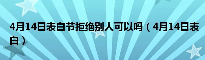 大家好,小晋来为大家解答以下问题,关于4月14日表白节拒绝别人可以吗,4月14日表白很多人还不知道,今天让我们一起来看看吧!