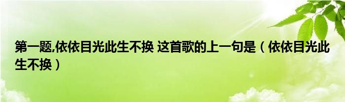 大家好,雨雨来为大家解答以上问题,第一题,依依目光此生不换 这首歌的上一句是,依依目光此生不换很多人还不知道,现在让我们一起来看看吧!