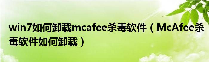 win7如何卸载mcafee杀毒软件(McAfee杀毒软件如何卸载)
