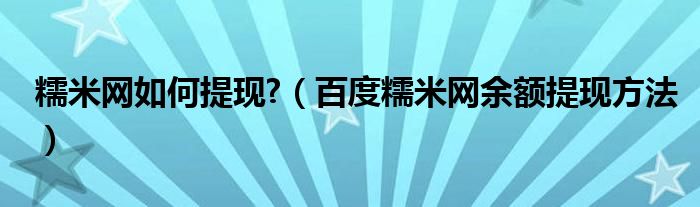 大家好,今天小悦来为大家解答以上问题。糯米网如何提现?,百度糯米网余额提现方法很多人还不知道,现在让我们一起来看看吧!