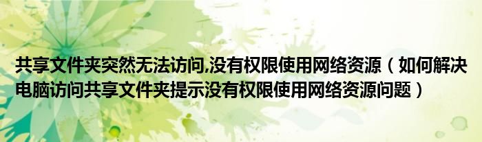 大家好,今天小悦来为大家解答以上问题。共享文件夹突然无法访问,没有权限使用网络资源,如何解决电脑访问共享文件夹提示没有权限使用网络资源问题很多人还不知道,现在让我们一起来看看吧!