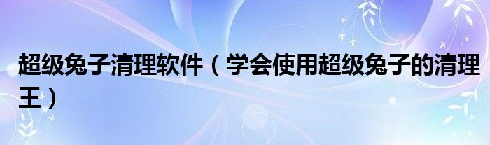 大家好,今天小悦来为大家解答以上问题。超级兔子清理软件,学会使用超级兔子的清理王很多人还不知道,现在让我们一起来看看吧!