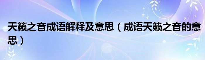 关于天籁之音成语解释及意思,成语天籁之音的意思这个很多人还不知道,今天菲菲来为大家解答以上的问题,现在让我们一起来看看吧!