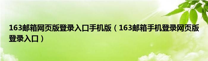 大家好,雨雨来为大家解答以上问题,163邮箱网页版登录入口手机版,163邮箱手机登录网页版登录入口很多人还不知道,现在让我们一起来看看吧!