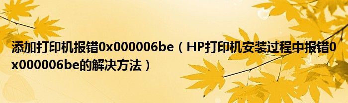 大家好,今天小悦来为大家解答以上问题。添加打印机报错0x000006be,HP打印机安装过程中报错0x000006be的解决方法很多人还不知道,现在让我们一起来看看吧!