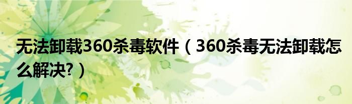 无法卸载360杀毒软件(360杀毒无法卸载怎么解决?)