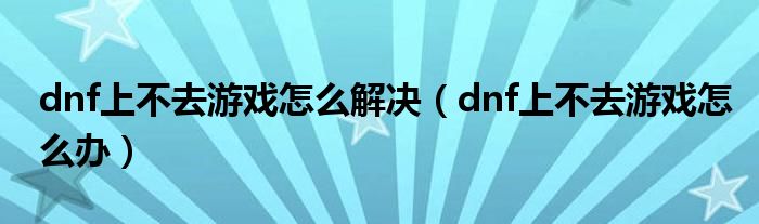 dnf上不去游戏怎么解决(dnf上不去游戏怎么办)