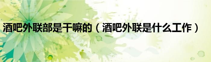 大家好,小晋来为大家解答以下问题,关于酒吧外联部是干嘛的,酒吧外联是什么工作很多人还不知道,今天让我们一起来看看吧!