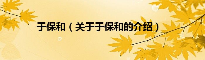 于保和(关于于保和的介绍)