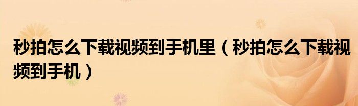 大家好,小晋来为大家解答以下问题,关于秒拍怎么下载视频到手机里,秒拍怎么下载视频到手机很多人还不知道,今天让我们一起来看看吧!