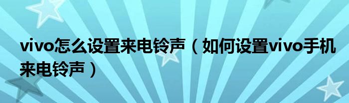 大家好,今天小悦来为大家解答以上问题。vivo怎么设置来电铃声,如何设置vivo手机来电铃声很多人还不知道,现在让我们一起来看看吧!