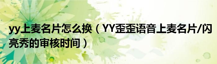 大家好,今天小悦来为大家解答以上问题。yy上麦名片怎么换,YY歪歪语音上麦名片/闪亮秀的审核时间很多人还不知道,现在让我们一起来看看吧!