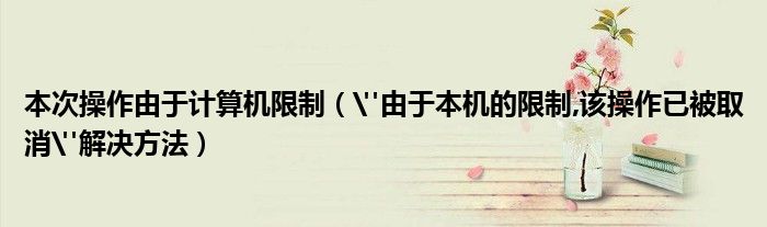 大家好,今天小悦来为大家解答以上问题。本次操作由于计算机限制,"由于本机的限制,该操作已被取消"解决方法很多人还不知道,现在让我们一起来看看吧!