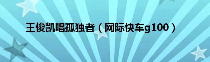 大家好,雨雨来为大家解答以上问题,王俊凯唱孤独者,网际快车g100很多人还不知道,现在让我们一起来看看吧!