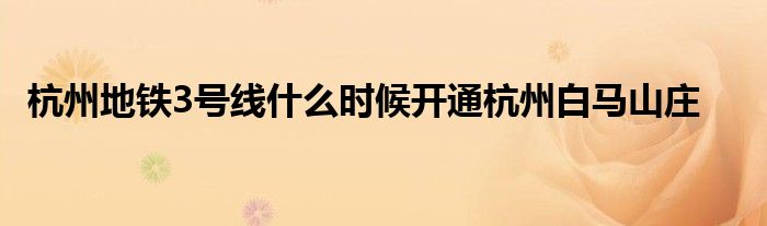 关于杭州地铁3号线什么时候开通杭州白马山庄这个很多人还不知道,今天菲菲来为大家解答以上的问题,现在让我们一起来看看吧!