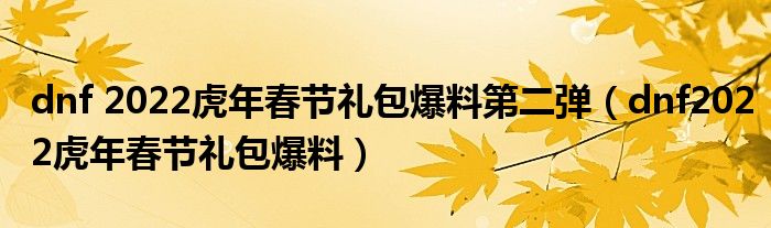 大家好,雨雨来为大家解答以上问题,dnf 2022虎年春节礼包爆料第二弹,dnf2022虎年春节礼包爆料很多人还不知道,现在让我们一起来看看吧!