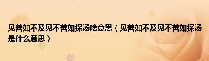 关于见善如不及见不善如探汤啥意思,见善如不及见不善如探汤是什么意思这个很多人还不知道,今天菲菲来为大家解答以上的问题,现在让我们一起来看看吧!