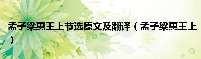关于孟子梁惠王上节选原文及翻译,孟子梁惠王上这个很多人还不知道,今天菲菲来为大家解答以上的问题,现在让我们一起来看看吧!
