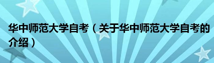 1、华中师范大学自考网是介绍专科毕业生通过自学考试来报考 华中师范大学专科升本科的网站,本站详细介绍了华中师范大学招收自考本科的专业设置、招生计划、报考条件、网上报名时间,成绩查询。