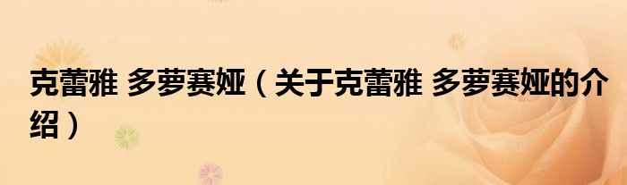 大家好,今天小乐来为大家解答以上的问题。克蕾雅 多萝赛娅,关于克蕾雅 多萝赛娅的介绍很多人还不知道,现在让我们一起来看看吧!