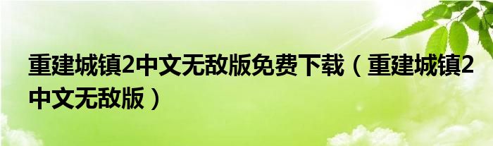 关于重建城镇2中文无敌版免费下载,重建城镇2中文无敌版这个很多人还不知道,今天菲菲来为大家解答以上的问题,现在让我们一起来看看吧!