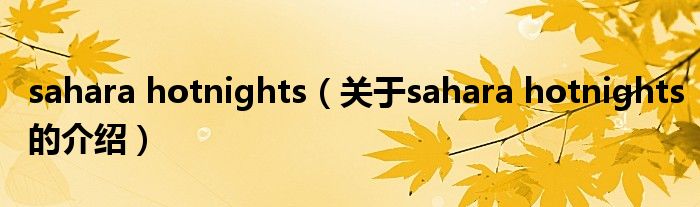大家好,今天小乐来为大家解答以上的问题。sahara hotnights,关于sahara hotnights的介绍很多人还不知道,现在让我们一起来看看吧!