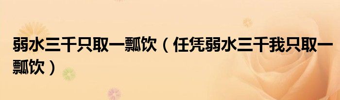关于弱水三千只取一瓢饮,任凭弱水三千我只取一瓢饮这个很多人还不知道,今天菲菲来为大家解答以上的问题,现在让我们一起来看看吧!