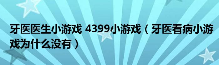 关于牙医医生小游戏 4399小游戏,牙医看病小游戏为什么没有这个很多人还不知道,今天菲菲来为大家解答以上的问题,现在让我们一起来看看吧!
