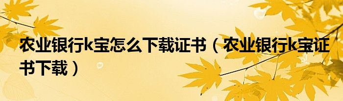 关于农业银行k宝怎么下载证书,农业银行k宝证书下载这个很多人还不知道,今天菲菲来为大家解答以上的问题,现在让我们一起来看看吧!
