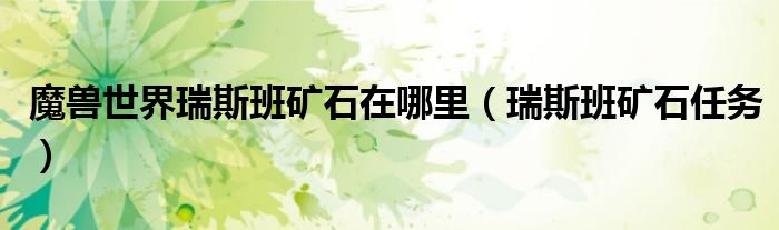 关于魔兽世界瑞斯班矿石在哪里,瑞斯班矿石任务这个很多人还不知道,今天菲菲来为大家解答以上的问题,现在让我们一起来看看吧!