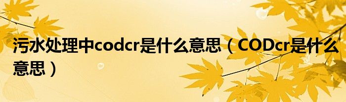 关于污水处理中codcr是什么意思,CODcr是什么意思这个很多人还不知道,今天菲菲来为大家解答以上的问题,现在让我们一起来看看吧!