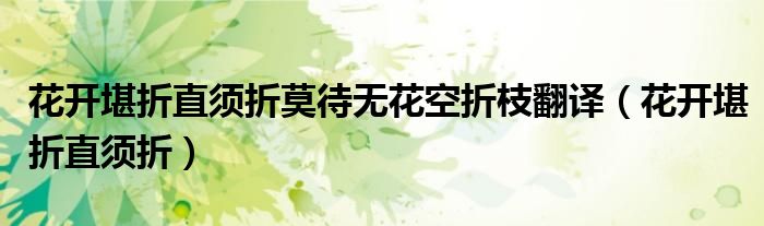 花开堪折直须折莫待无花空折枝翻译(花开堪折直须折)