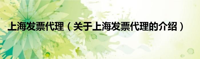 上海发票代理(关于上海发票代理的介绍)