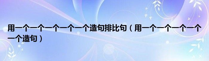 关于用一个一个一个一个一个造句排比句,用一个一个一个一个一个造句这个很多人还不知道,今天菲菲来为大家解答以上的问题,现在让我们一起来看看吧!