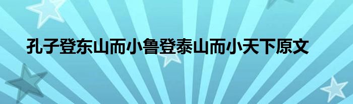 关于孔子登东山而小鲁登泰山而小天下原文这个很多人还不知道,今天菲菲来为大家解答以上的问题,现在让我们一起来看看吧!