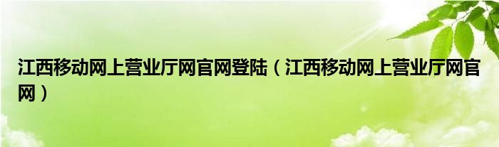 江西移动网上营业厅网官网登陆(江西移动网上营业厅网官网)