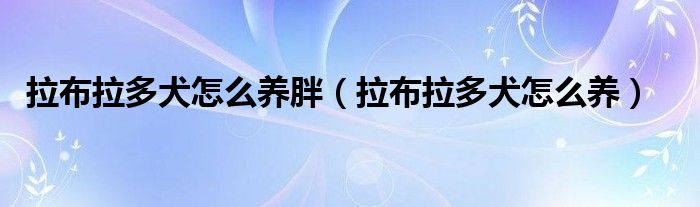 关于拉布拉多犬怎么养胖,拉布拉多犬怎么养这个很多人还不知道,今天菲菲来为大家解答以上的问题,现在让我们一起来看看吧!