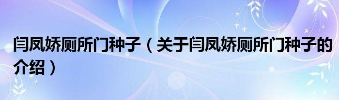 大家好,今天小乐来为大家解答以上的问题。闫凤娇厕所门种子,关于闫凤娇厕所门种子的介绍很多人还不知道,现在让我们一起来看看吧!