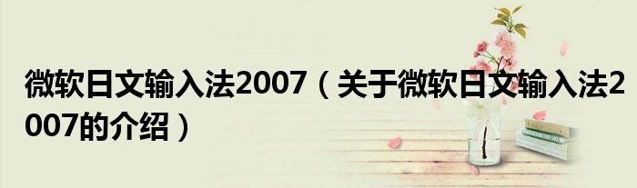 微软日文输入法2007(关于微软日文输入法2007的介绍)