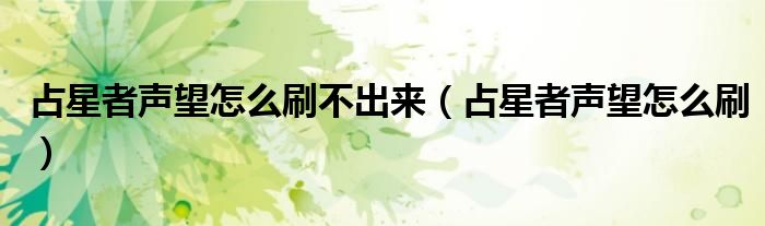 占星者声望怎么刷不出来(占星者声望怎么刷)