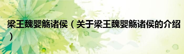 大家好,今天小乐来为大家解答以上的问题。梁王魏婴觞诸侯,关于梁王魏婴觞诸侯的介绍很多人还不知道,现在让我们一起来看看吧!