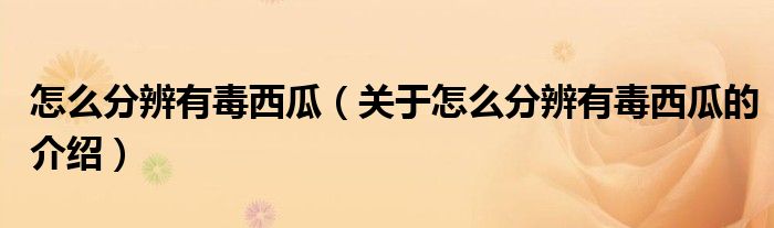 大家好,今天小乐来为大家解答以上的问题。怎么分辨有毒西瓜,关于怎么分辨有毒西瓜的介绍很多人还不知道,现在让我们一起来看看吧!