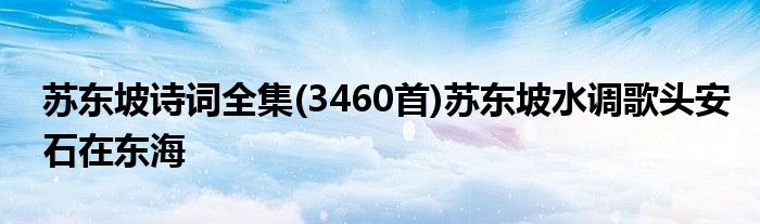 关于苏东坡诗词全集(3460首)苏东坡水调歌头安石在东海这个很多人还不知道,今天菲菲来为大家解答以上的问题,现在让我们一起来看看吧!