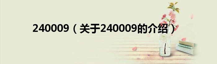 大家好,小都来为大家解答以上的问题。240009,关于240009的介绍很多人还不知道,现在让我们一起来看看吧!